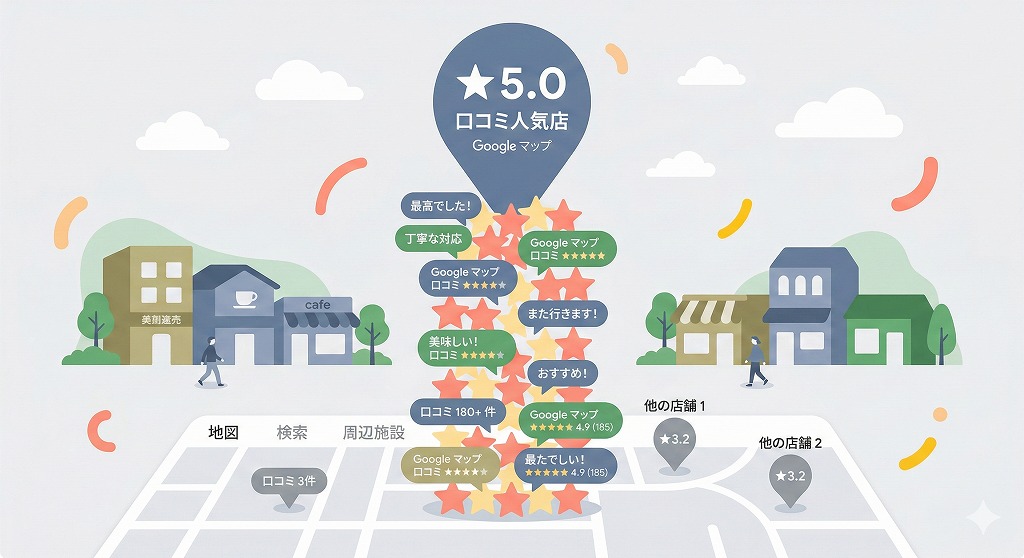 現在では、店舗の集客力を大きく左右する重要な要素となっています。ここでは、Google口コミが持つ価値と、マップ検索で上位表示を目指す「MEO対策」への影響について解説します。