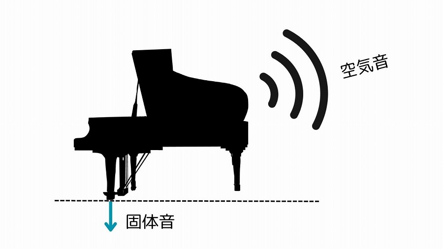 固体音 ピアノの筐体からキャスターを経由して床に伝わる音