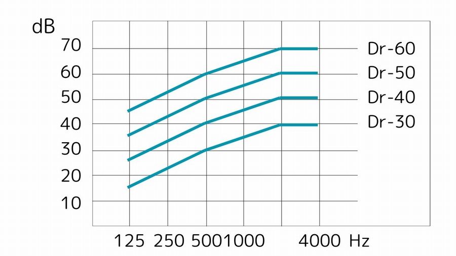 まず、防音性能を表すグラフを見てください。500Hz付近で30dBの透過損失を発生させる性能をDr-30と表します。