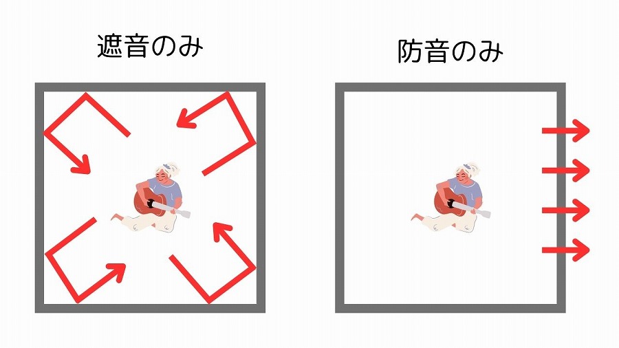 遮音だけだと音が部屋の中で反射し続けるため、音楽を演奏する環境には適しません。