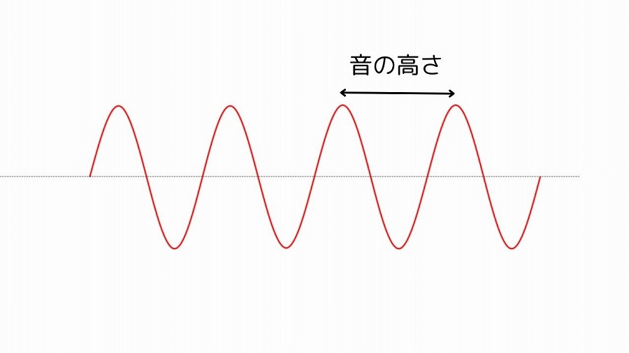 振幅する回数が多ければ高い音、少なければ低い音になります。