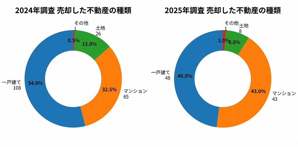 2024年調査では、売却した不動産の種類は以下の通りでした。