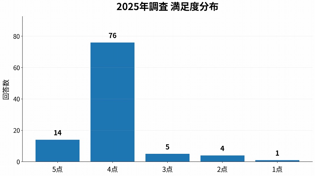 - 2025年調査では満足度4点・5点が90件だった