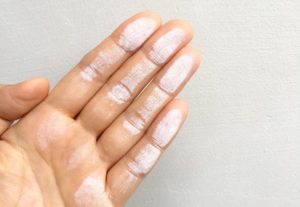 シーリングの劣化と並びわかりやすい目安は、外壁表面を触ると白い粉状の物がついてくるチョーキング現象。この現象が見られたら、再塗装すべき時といえます。