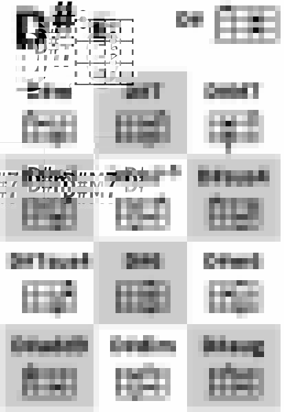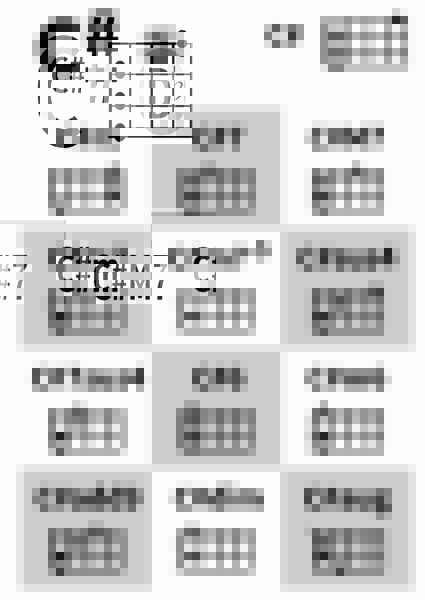 コードC#とD♭の構成音は同じです。そこで、D♭が弾きたい場合は、C#を見ればOKです。