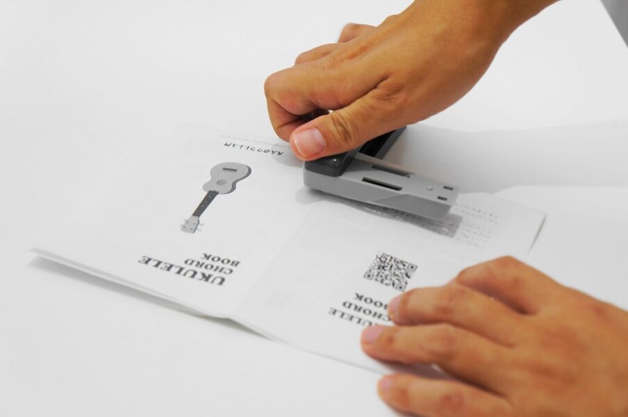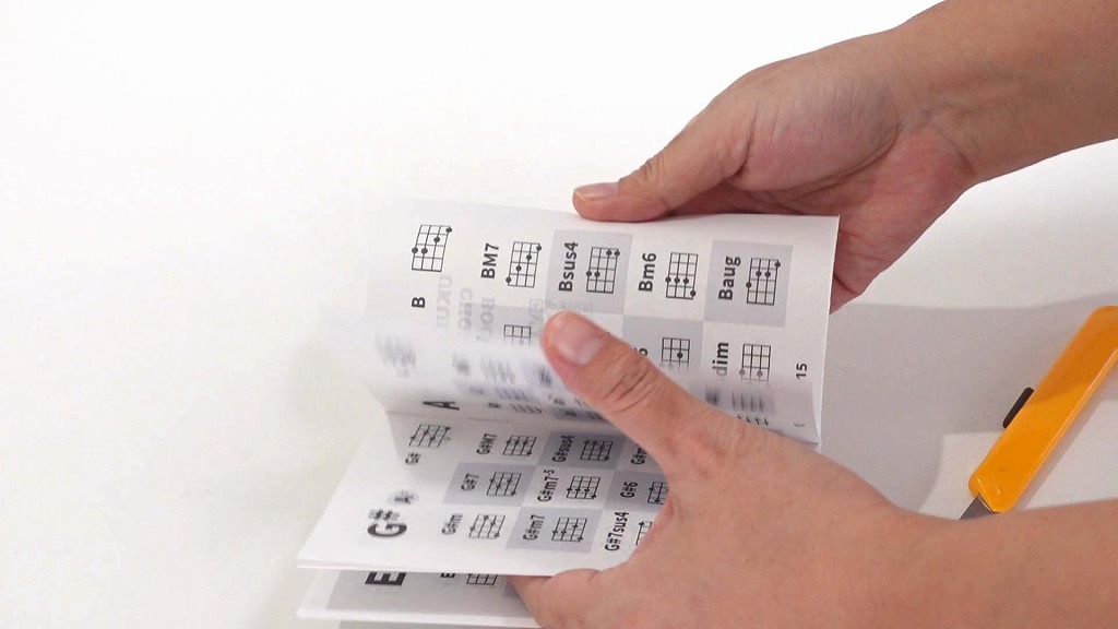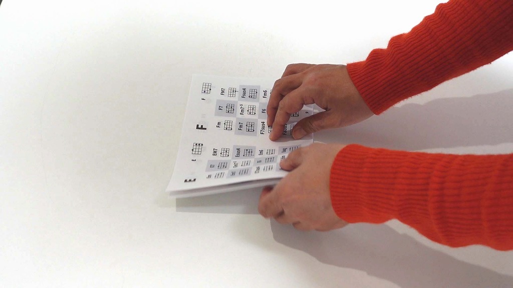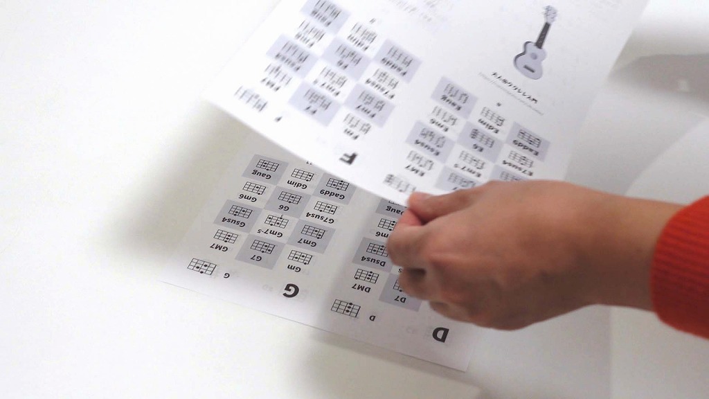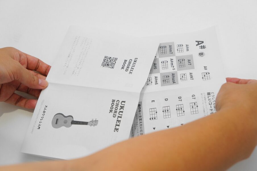 データは無料でダウンロードできます。印刷して、折って、ホッチキスで留めるだけ。工作感覚で簡単に作れます。ポケットやウクレレケースに入る小型のコードブックなので、ぜひ手元に置いてご活用ください。