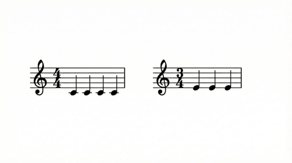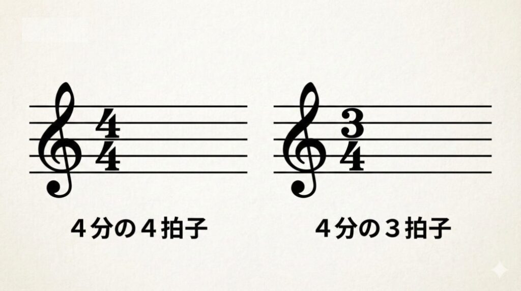 4分の4拍子は1小節の中に4分音符が4個入っているのに対して、4分の3拍子では1小節につき4分音符が3つになります。