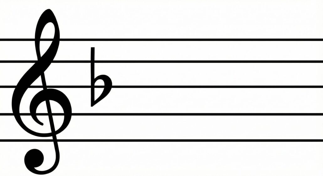 フラットは「半音下げる」ことを意味しています。演奏者から見て1フレット分左にずらします。